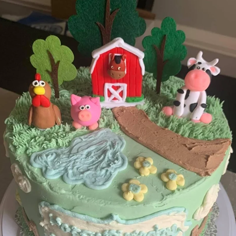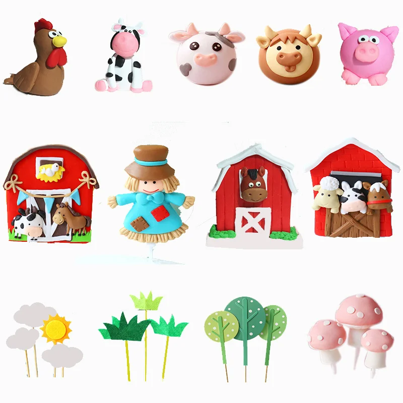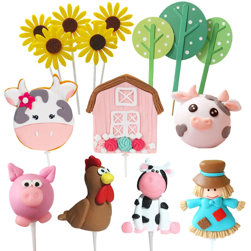 Farm Animal Cake Decoration Farm Theme Birthday Cake Topper Pig Chicken Tractor Cow Figure Cake Topper for Baby Show Farm Party