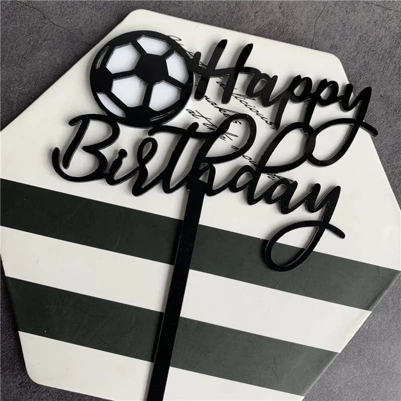 New Football Acrylic Cake Topper Sports Soccer Happy Birthday Cake Topper Flags For Boys Birthday Sports Party Cake Decorations